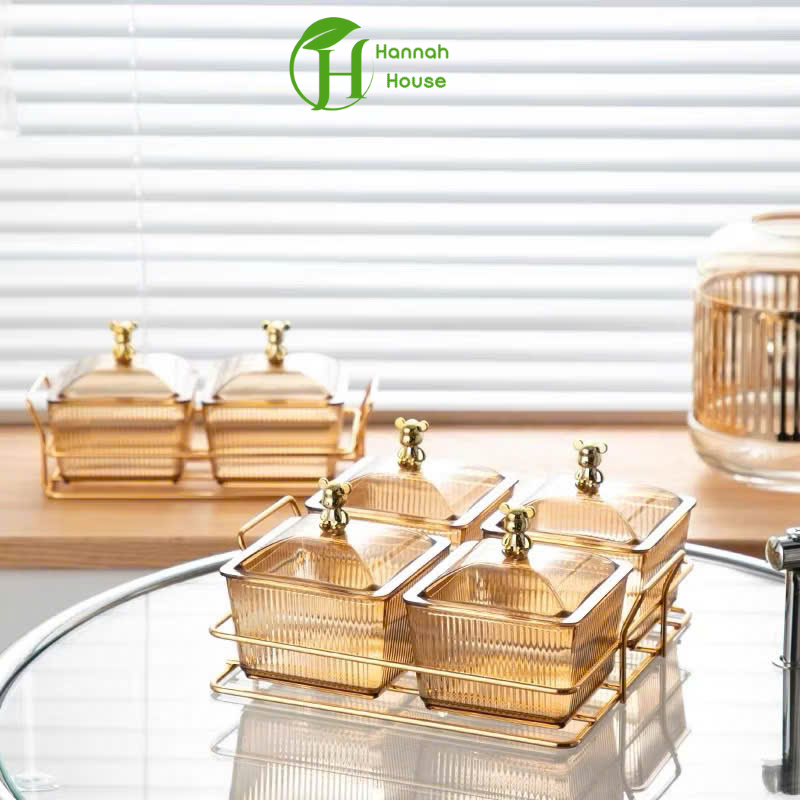 – Chất liệu: Khay inox, hủ nhựa cao cấp, nắp hủ nhựa hình sọc dọc