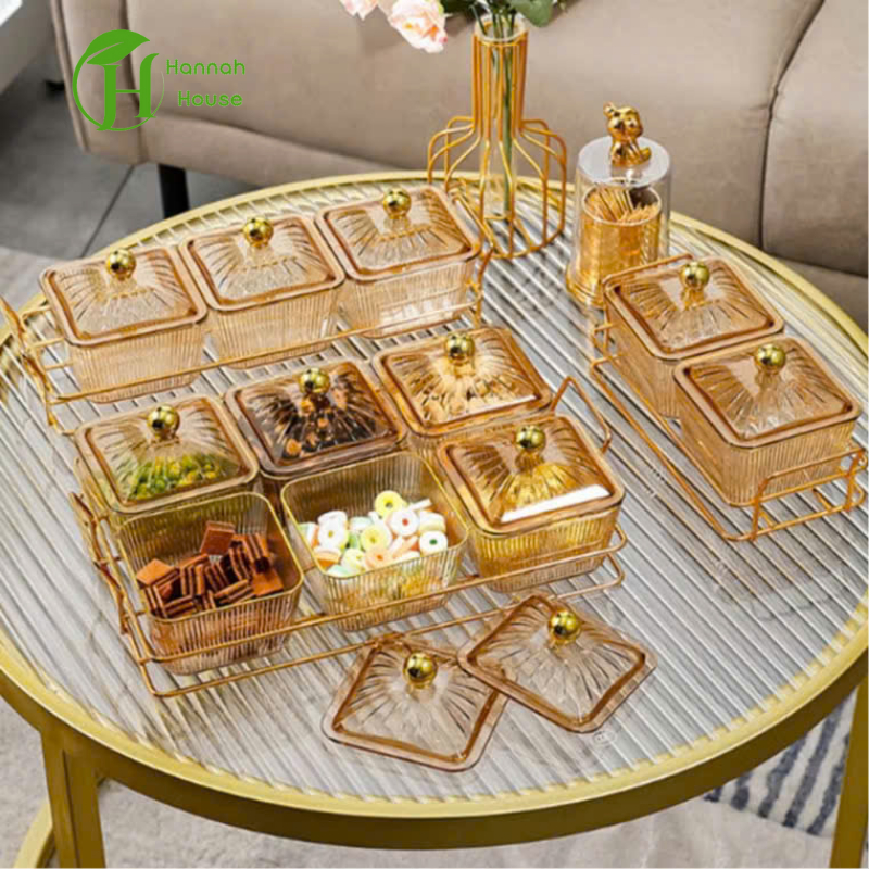 Khay đựng mứt Tết, Khay đựng bánh kẹo Tết, Nhựa Acrylic cao cấp màu hổ phách sang trọng
