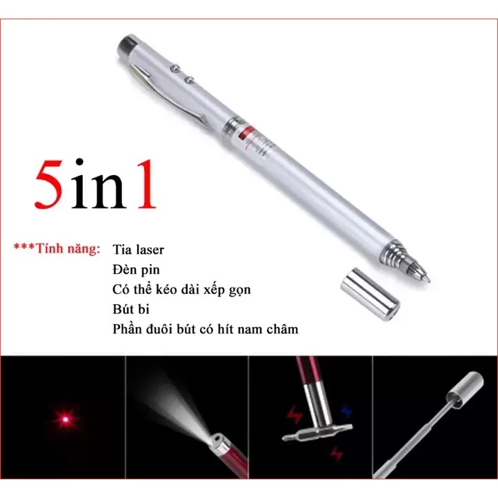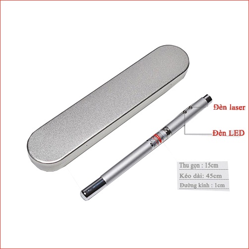 – Trừ công dụng có thể viết được thì Đèn Laser Hình Cây Bút còn có 4 cách sử dụng khác là bạn có thể kéo dài đầu bút thành 1 cây thước dài giảng bài, có thể chiếu laser vào những điểm quan trọng cần làm rõ, hoặc khi gặp sự cố mất điện trong tối bạn có thể phát đèn pin trên bút để chiếu sáng, bạn cũng có thể soi tiền giả bằng đèn tím.