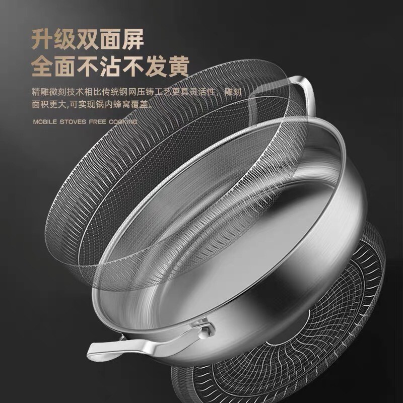 Đặc biệt với bề mặt không sử dụng sơn phủ mà khắc laser chống dính toàn bộ bề mặt lòng chảo nên tuyệt đối an toàn và siêu bền, có thể sử dụng dụng cụ kim loại để đun nấu mà không sợ bong tróc bề mặt chống dính.