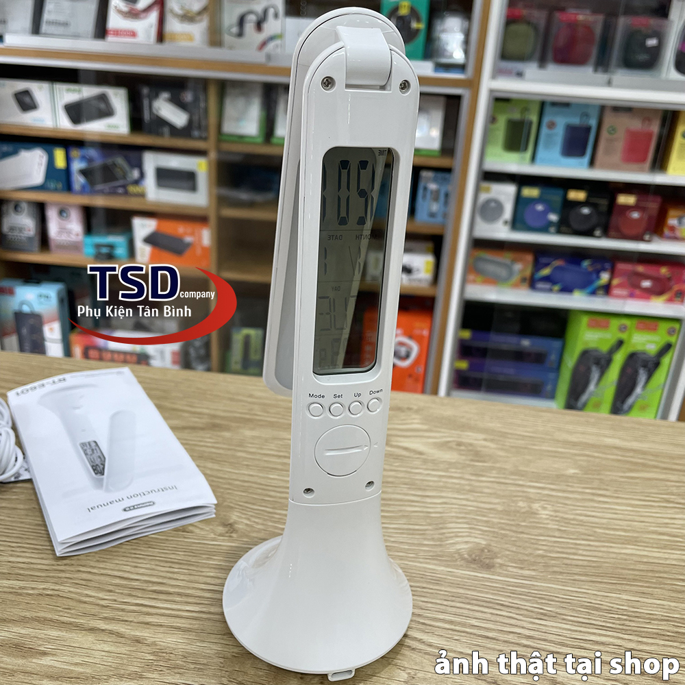 Đèn Led Để Bàn Đa Năng Thông Minh Remax RT-E601 Chính Hãng tích hợp đồng hồ