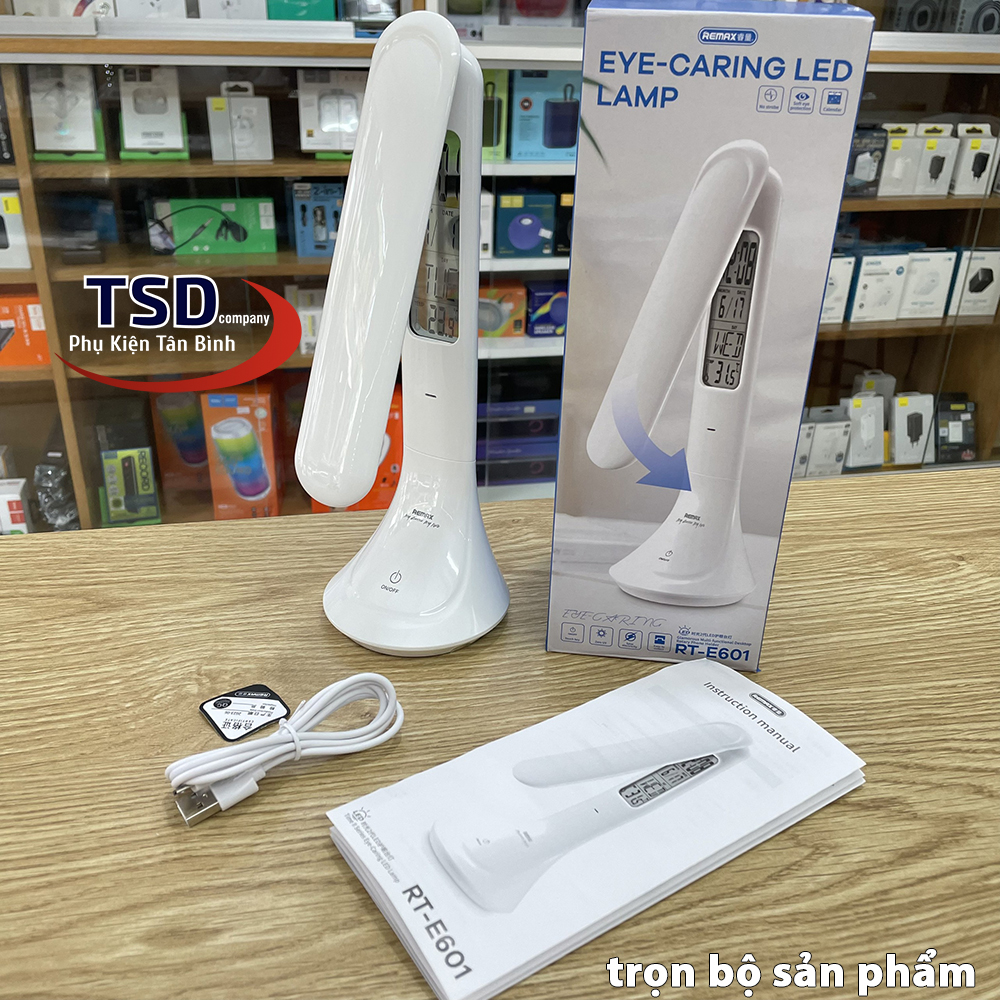 - Không chỉ là chiếc đèn led đơn giản, Remax RT-E601 còn là chiếc đồng hồ báo thức thông minh. Thân đèn hiển thị đồng hồ xem giờ, ngày, tháng và nhiệt độ và có thêm chế độ báo thức. Bạn có thể dễ dàng cài đặt theo hướng dẫn và sử dụng vô cùng tiện lợi.