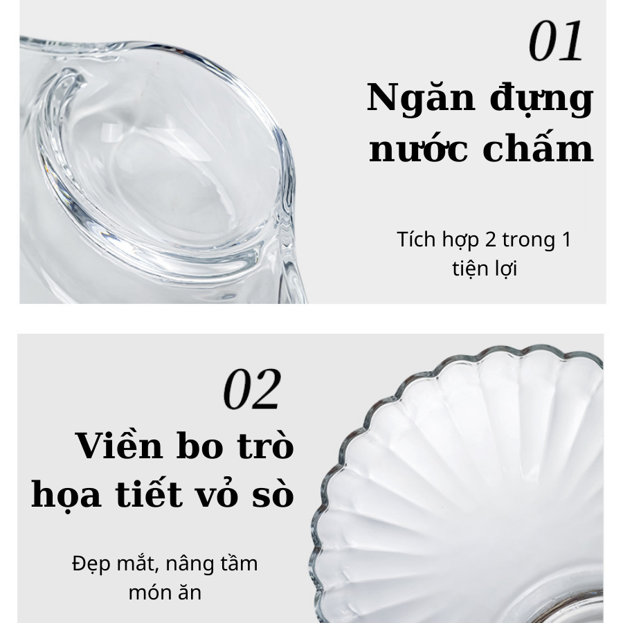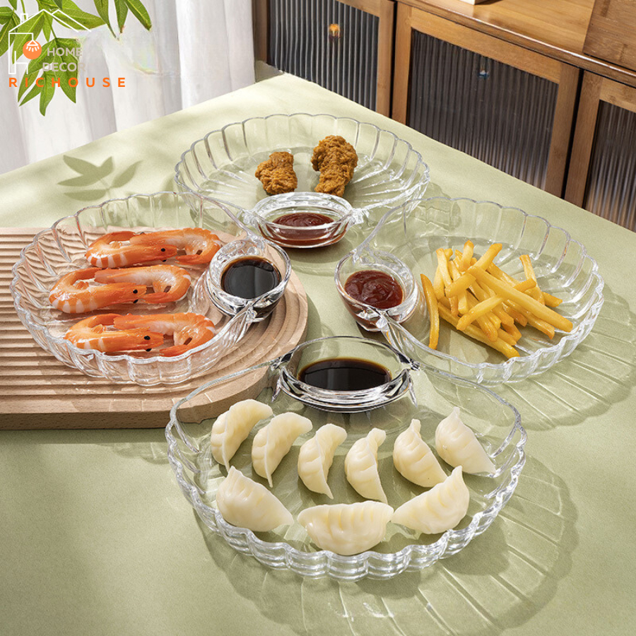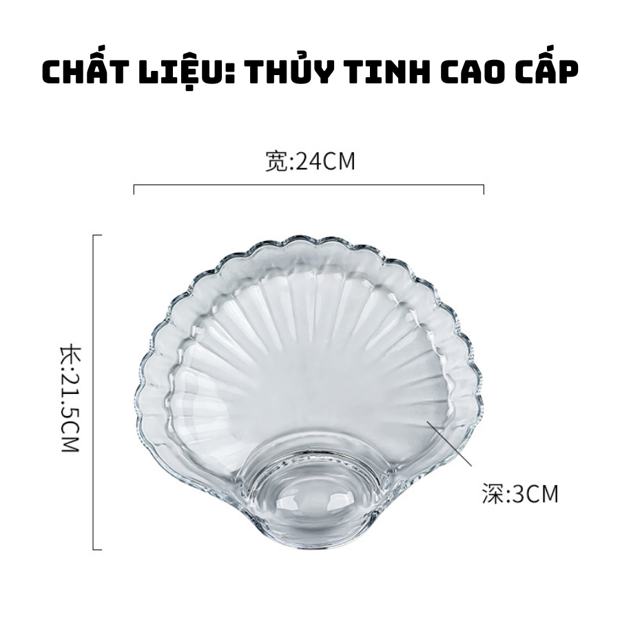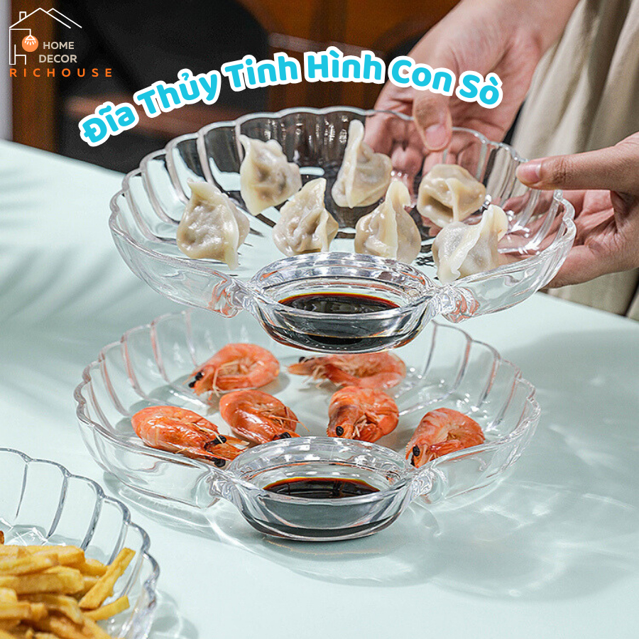 Đĩa Thủy Tinh Hình Vỏ Sò Có Ngăn đựng Nước Chấm