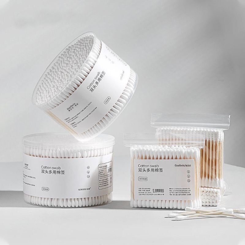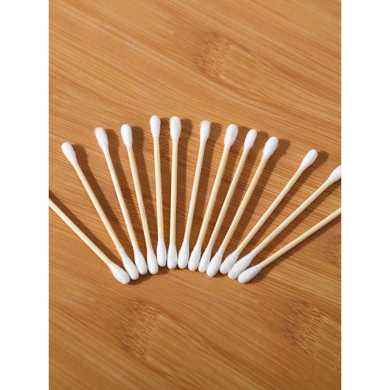 Hộp 500 tăm bông thân gỗ 2 đầu dùng cắt tóc, spa, gia đình.