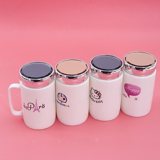 Ly sứ giữ nhiệt nắp có gương và có quai cầm tiện dụng, dùng đựng nước uống hoặc thực phẩm, một cốc sửa hay cà phê sẽ được mang đi làm hay đi học một cách dễ dàng.