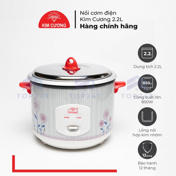 Mô tả nồi cơm điện Kim Cương 2.2 l nắp rời