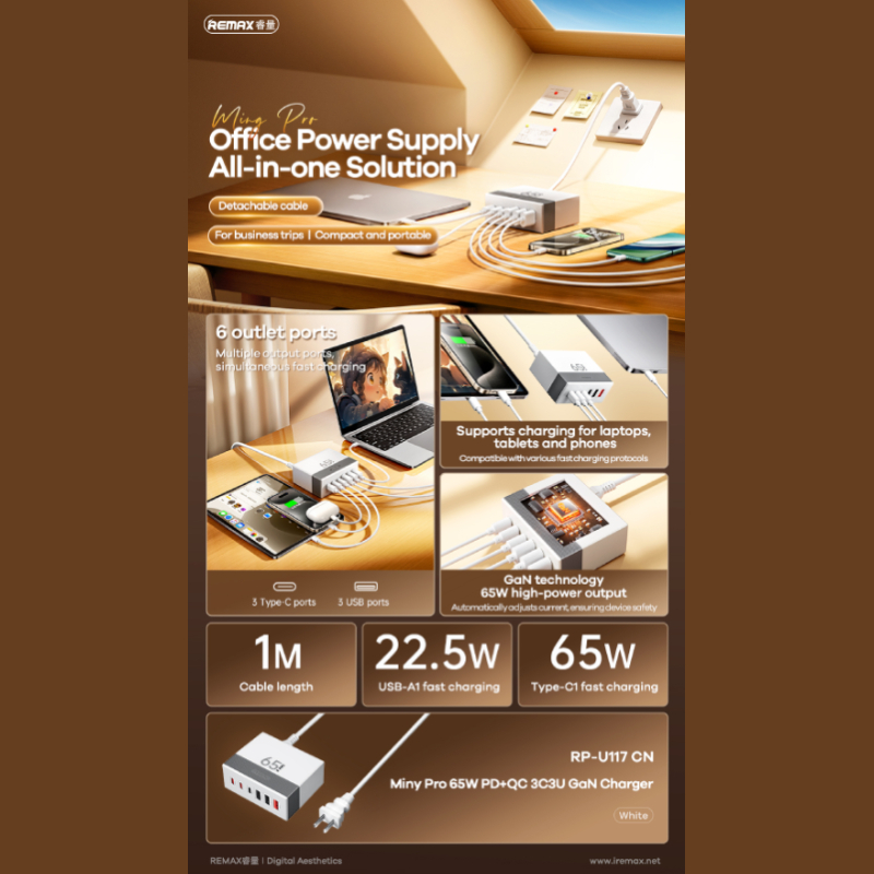 Sạc tốc độ cao 165W 6 trong 1: 6 củ sạc USB di động, 3 cổng USB-C PD 3.0 (USB-C1: 65W, USB-C2: 20W, USB-C3: 20W) + 3 cổng USB-A (USB -A1: 20W, USB-A2: 20W, USB-A3: 20W), tổng công suất lên tới 165W. trên điện thoại thông minh, máy tính bảng và máy tính xách tay USB-C. Sạc trong nháy mắt. Bộ sạc nhanh USB C tự động phát hiện các thiết bị được kết nối và sạc chúng ở mức tối ưu. để giảm thiểu thời gian chờ đợi và giải phóng bạn khỏi những bộ sạc lộn xộn với nhiều giao diện khác nhau.
