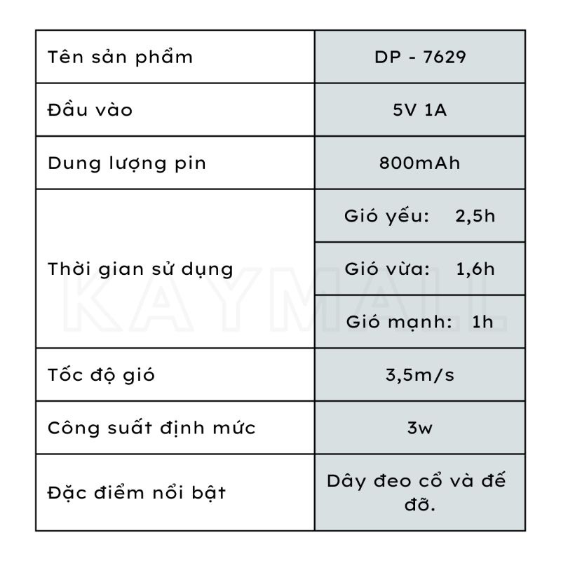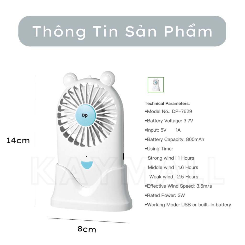 – Tên: Quạt Sạc Mini Đeo Cổ, Cầm Tay, Để Bàn, Quạt Sạc USB Tích Điện Model DP 7629