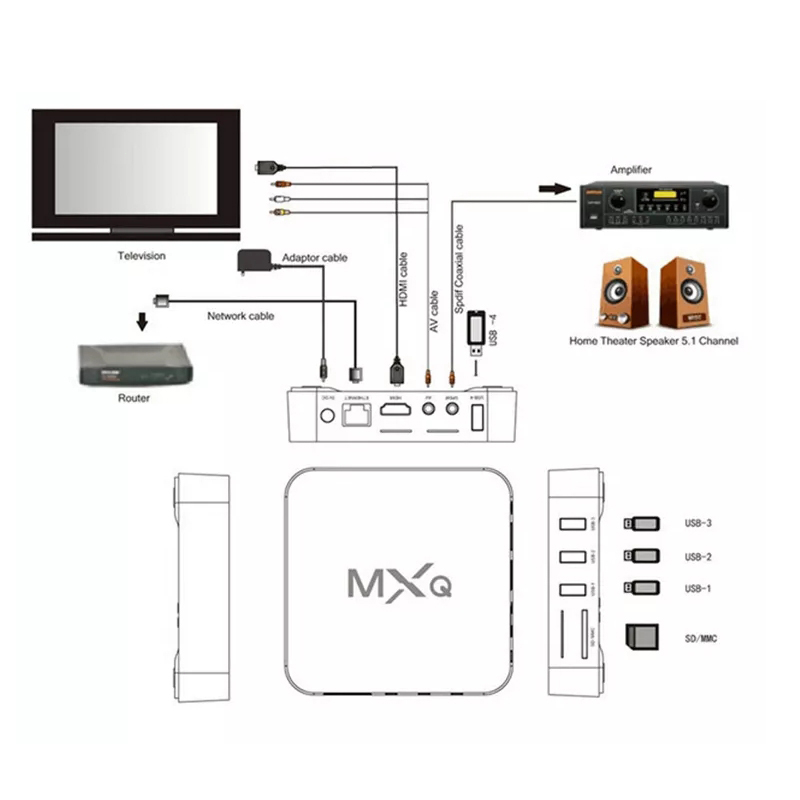Thiết kế phần cứng của thiết bị Androi TV Box MXQ Pro 4K bao gồm: